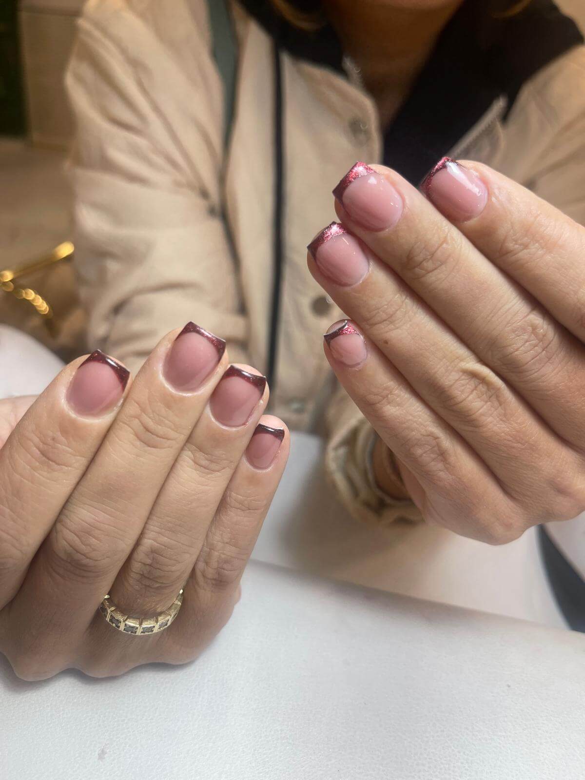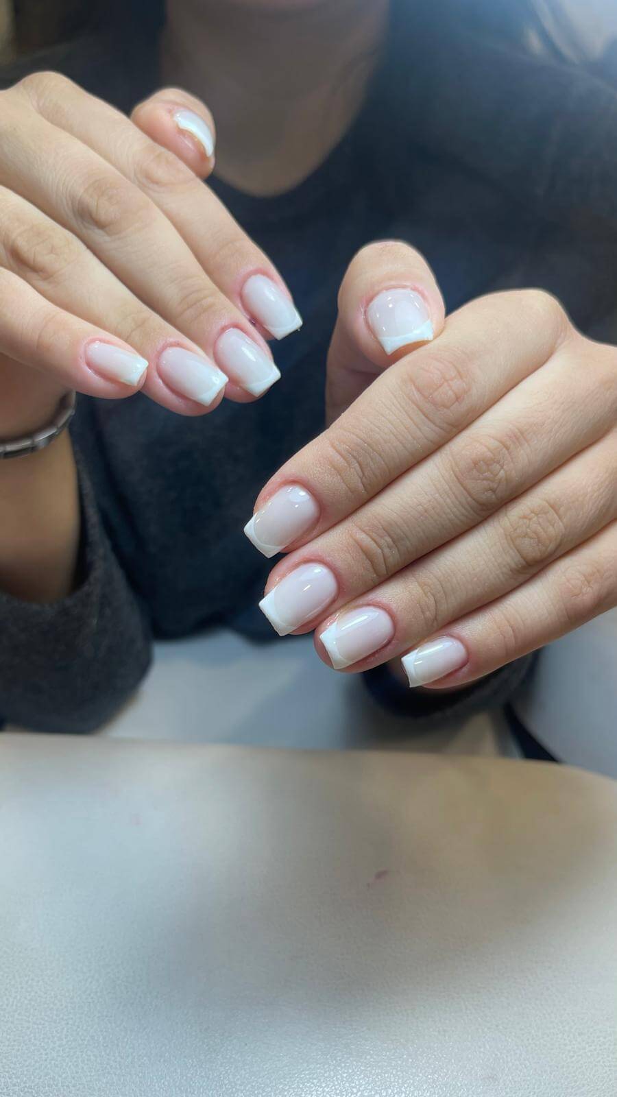Hazırlık (Kuru Manikür): Tırnak yüzeyi yağdan arındırılır ve tırnak etleri (kutikül) profesyonelce temizlenir.