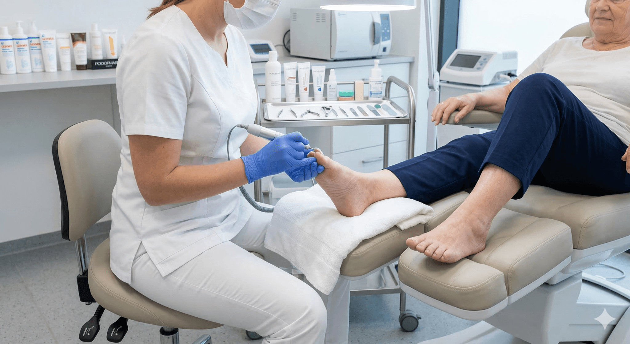 Medikal pedikür işlemi steril ekipmanlar ve profesyonel cihazlar kullanılarak yapılır. Uygulama sırasında ayak sağlığı ön planda tutulur.